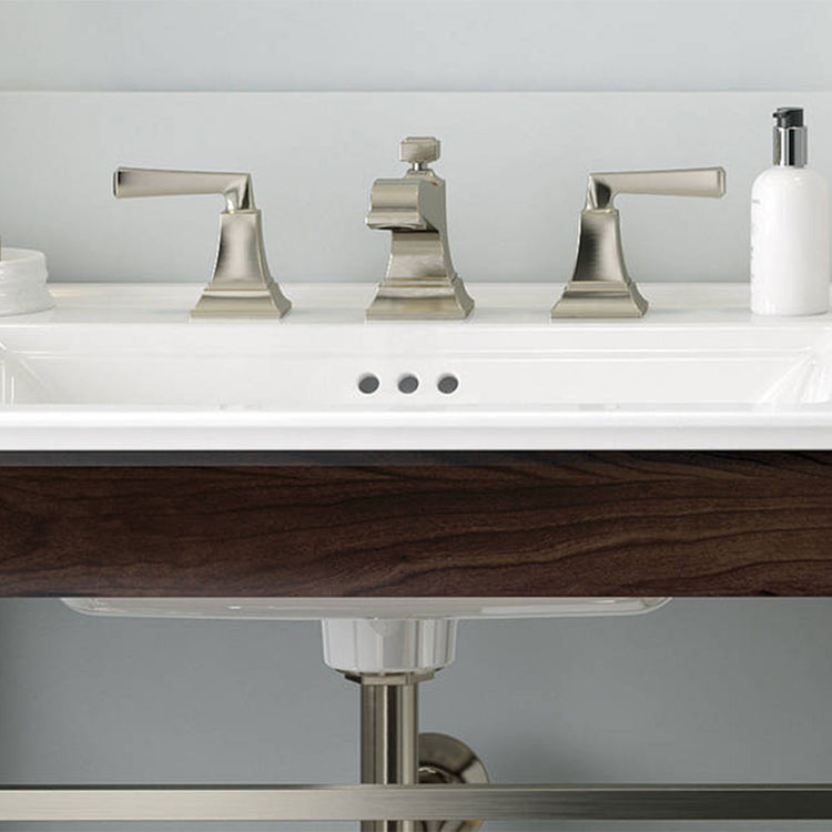 The Town Square S Widespread Faucet by American Standard cultivates an air of elegance in the bathroom with its architecturally-inspired design, stately square shapes, and details reminiscent of crown molding. A brass construction provides incredible durability, is easy to clean, and provides the best surface for our beautiful tarnish- and scratch-resistant finishes. As part of the Town Square S collection, the bathroom faucet is easy to coordinate with other fittings and fixtures, for an effortless space that looks polished and perfectly matched.