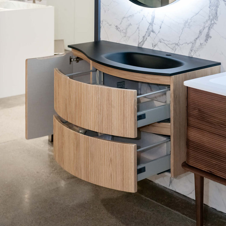 41" Olimpia Bath Vanity in tobacco oak and black top
