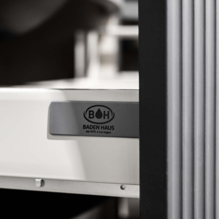 The versatility of the Olimpia Collection is enhanced by integrated washbasins in resin, extra light white glass, satin matt black or countertop in white or colored ceramic, in the single or double bowl version. The Collection is completed by a wide range of equipped cupboards and multifunctional backlit mirrors with touch system, bluetooth and dimmer for regulating the intensity and colour of the light to offer the widest design freedom.