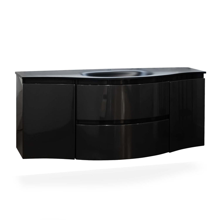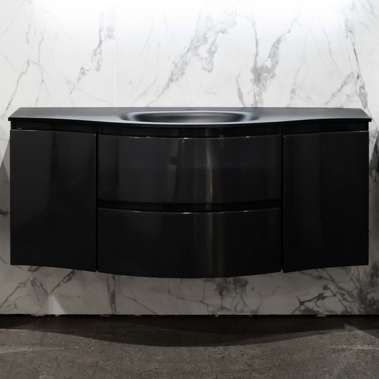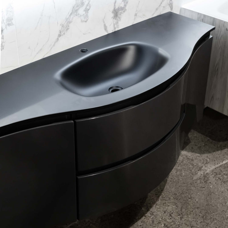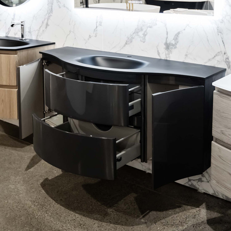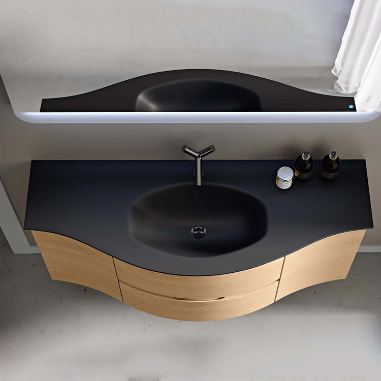 Exterior doors and central drawers with self-braking closing system for a bathroom concept centered on the rationality of the shapes and the practicality of the use.