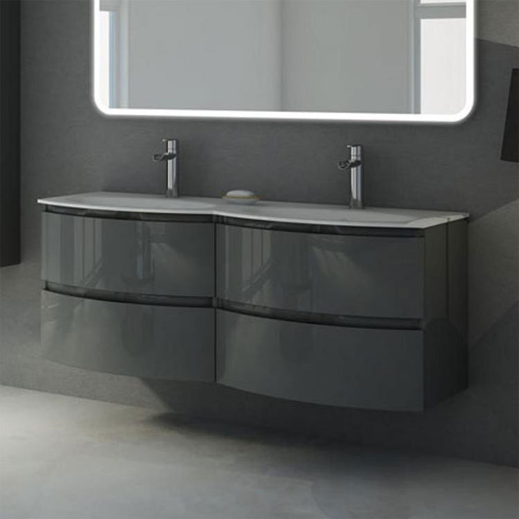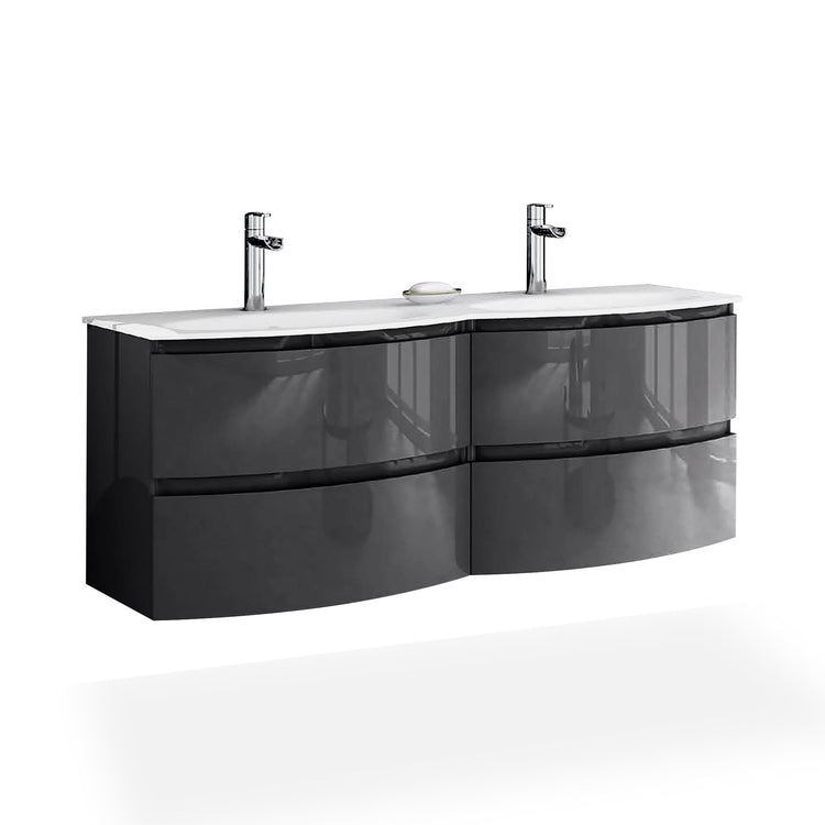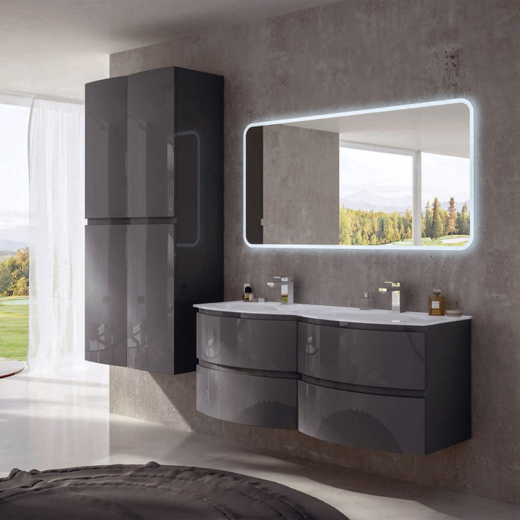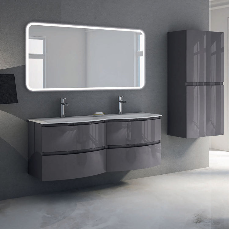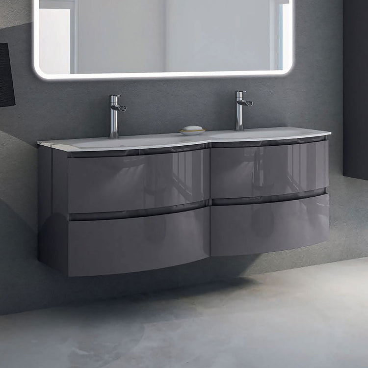 Exterior doors and central drawers with self-braking closing system for a bathroom concept centered on the rationality of the shapes and the practicality of the use.