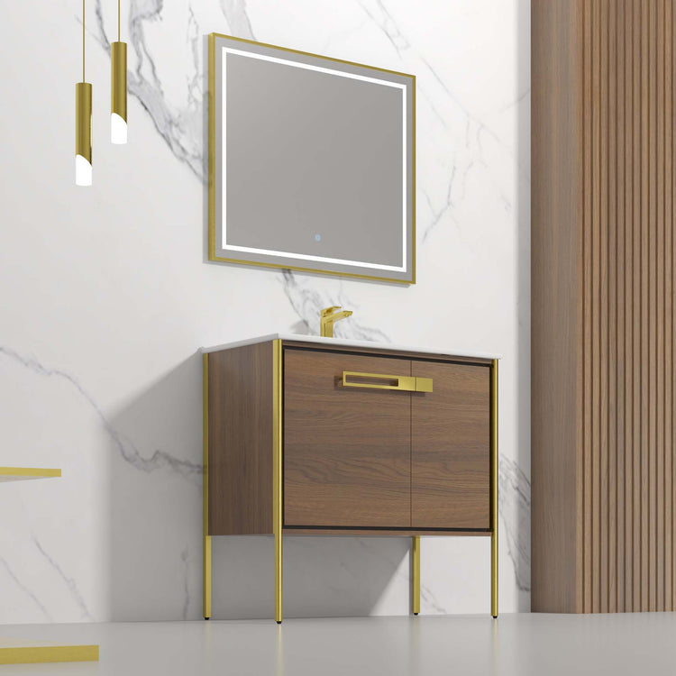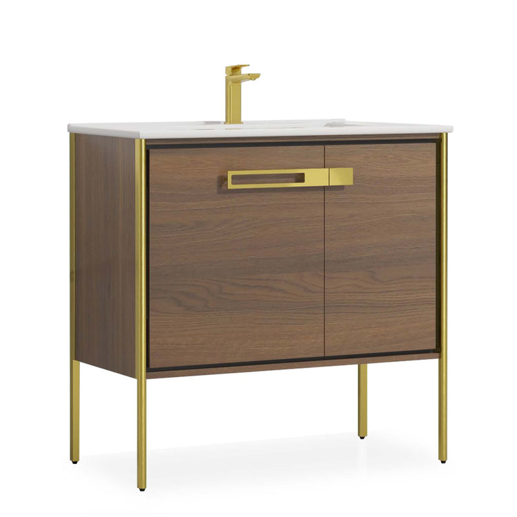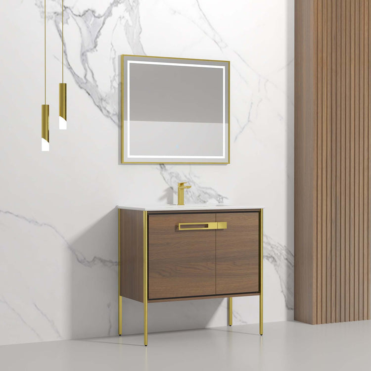 PETRA 36" Vanity European Walnut / Brushed Gold