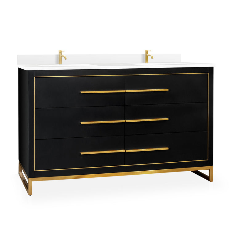 WINDSOR 60β Double Vanity comes with Pure White Quartz top. Single faucet hole drilling only. Additional faucet holes can be drilled by installers.