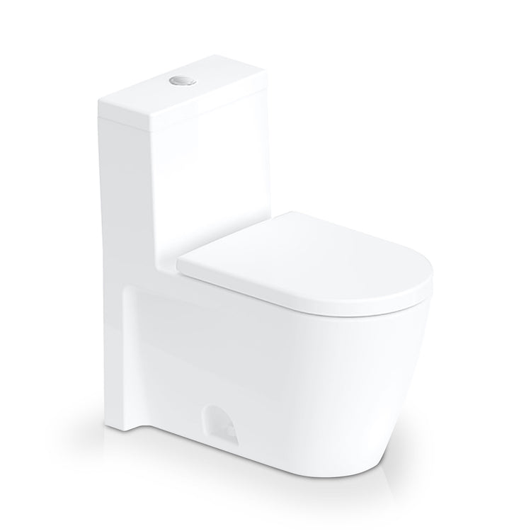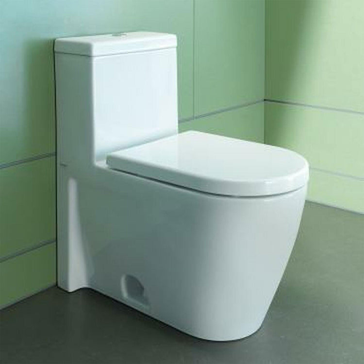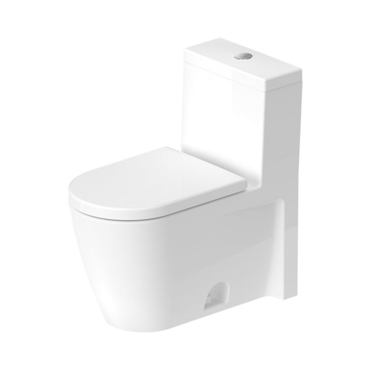 US-version, elongated with syphonic jet action, 305 mm/12" rough-in, with Single Flush piston valve, top flush, vertical outlet, 1,28 gpf (4,8 lpf)