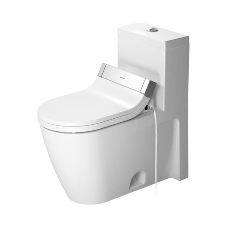 The toilet is available as a wall-mounted version, floorstanding version for in-wall cistern with matching bidet, floorstanding version with visible cistern and with the shower-toilet seat SensoWash® Starck.