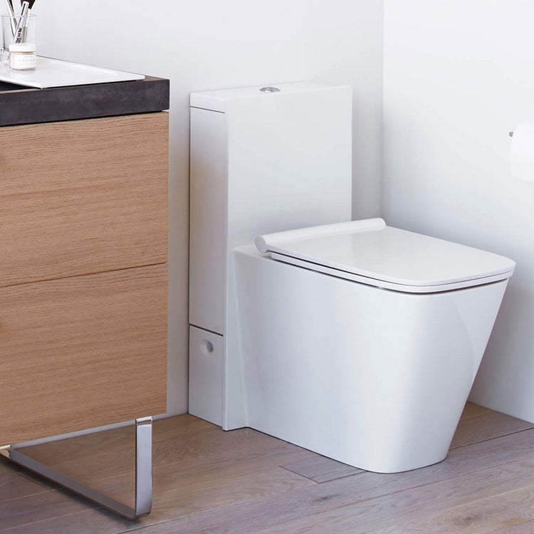 Exemplify the boldness of modern design with the Modulus Monolith one-piece toilet, by DXV. A slim high back toilet tank provides sculptural prowess, allowing you to express yourself in the space. Removable panels provide the option for a concealed installation, providing a streamlined look. With a Right Height® tall toilet seat and elongated bowl, the Modulus toilet is both accessible and comfortable, while a flush rate of just 1.28 gallons per flush helps to save water.