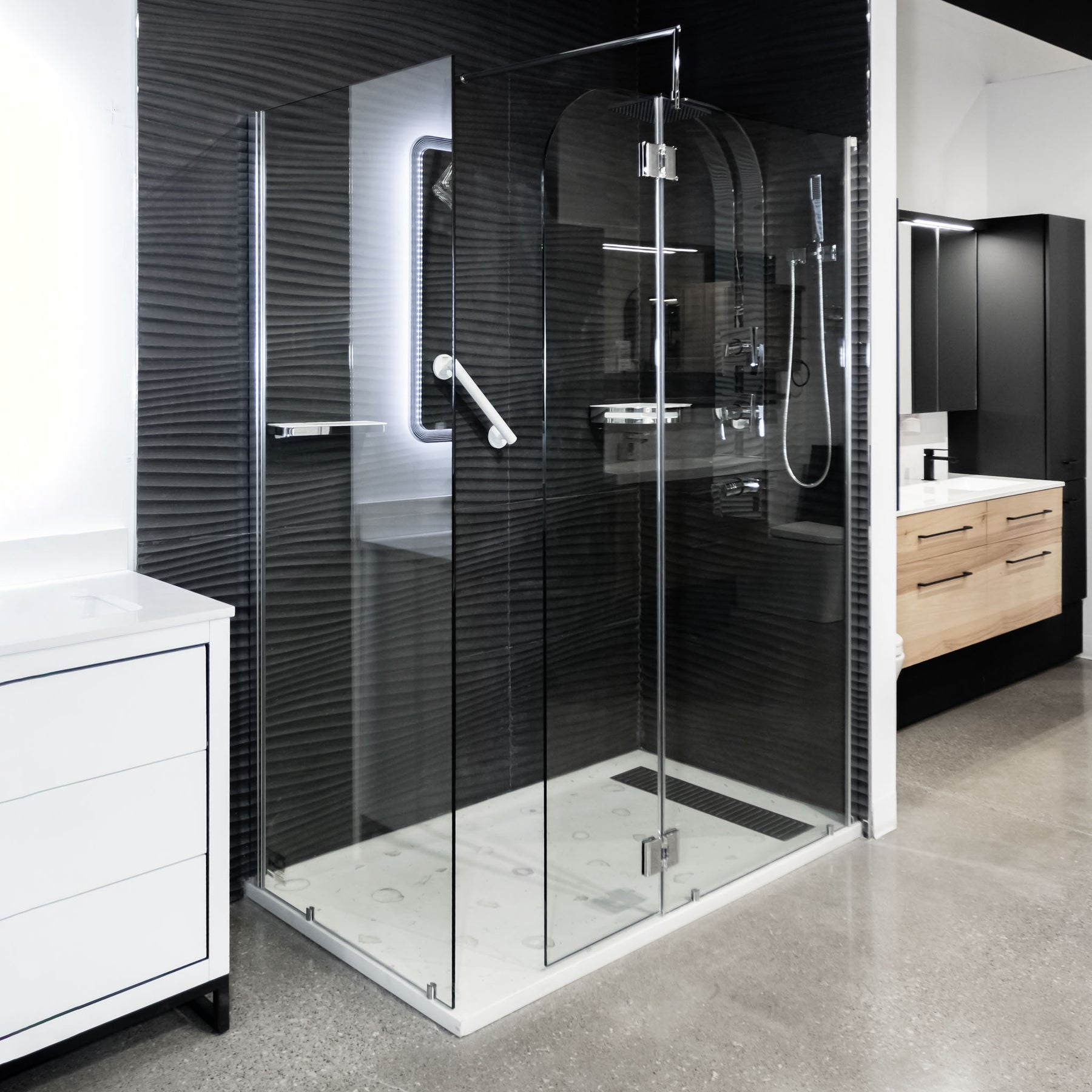 Shower Shield 79"H + Concrete Shower Base 60"L x 36"W Package