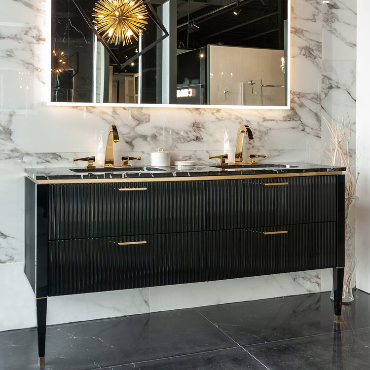 170cm Bath Vanity LAMÈ Gessato Double Sink Black