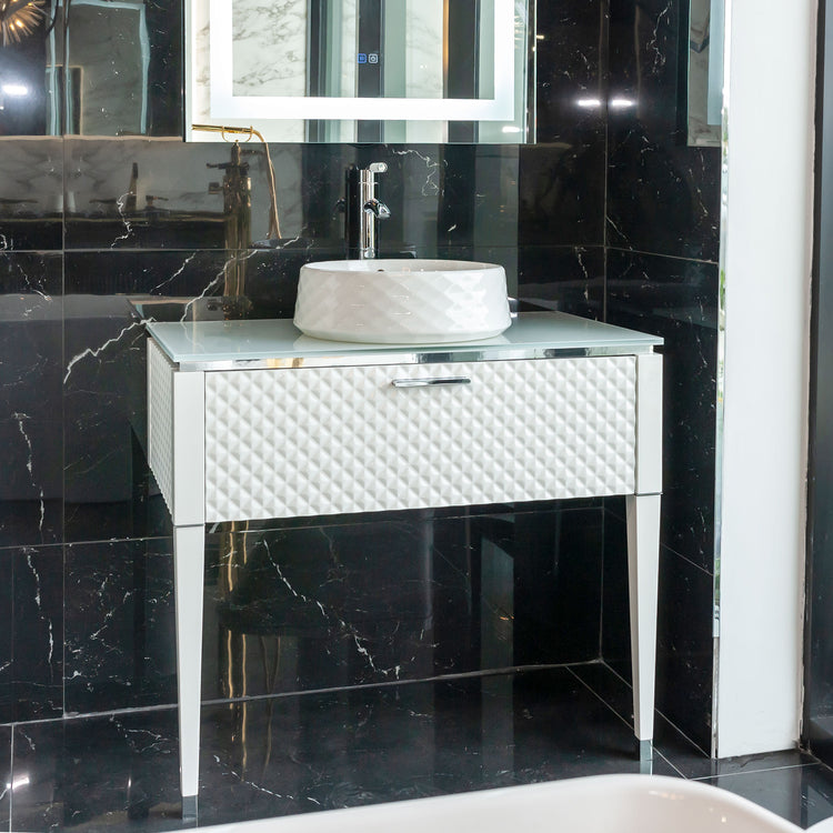 90cm Bath Vanity LAMÈ Galles Single Sink White