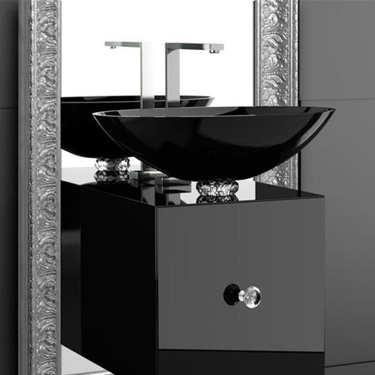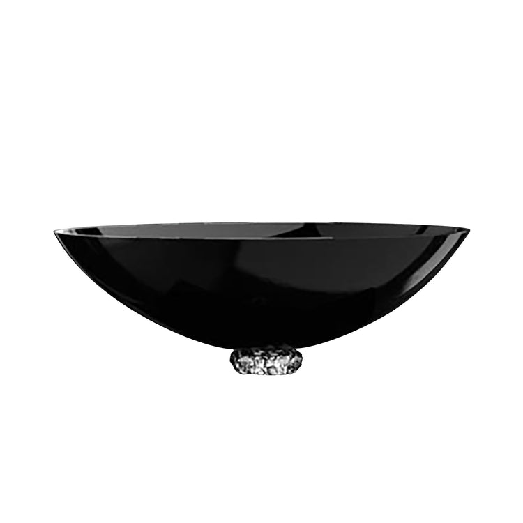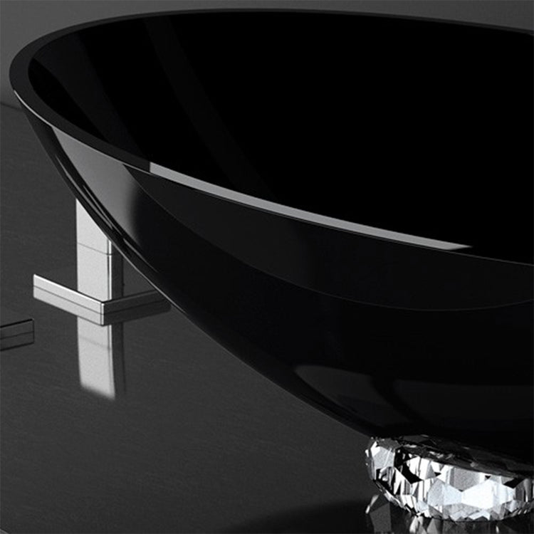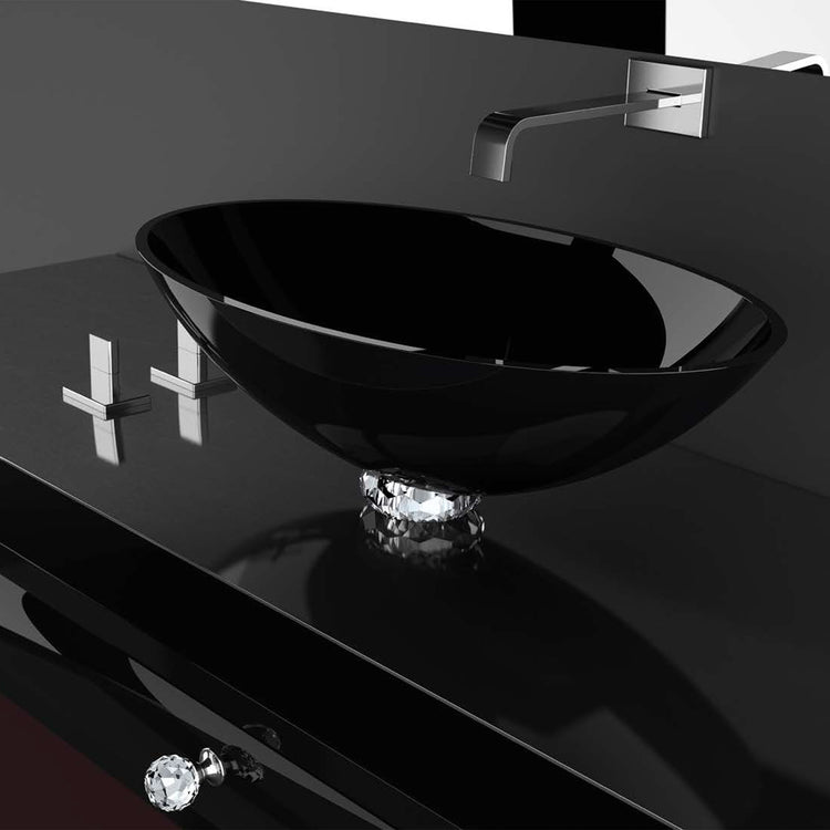 COLLIER oval countertop washbasin in the purest black crystal 24% pb, with clear crystal basement jewel cut. The exclusive black crystal raised by the clear precious crystal collar. A product of austere sophistication, elegant thug contemporary.