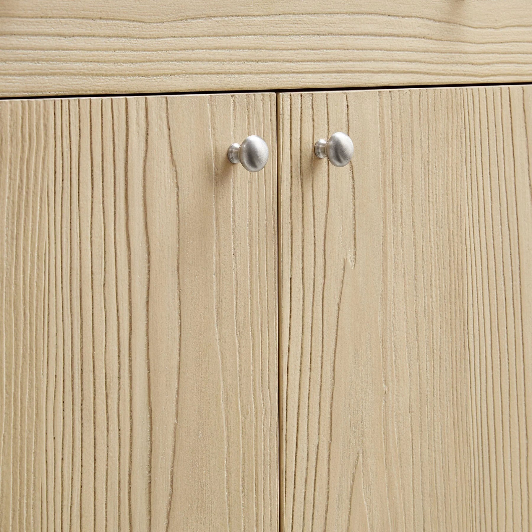 The sand-blasted finish on natural Ash gives textural and visual definition to the wood grain, truly bringing this piece to life. Featuring an integrated USB/120V power unit and smooth radius edges, the Gracyn is complemented by elegant Satin Nickel hardware. The two-door cabinet features ample storage with one exterior drawer, interior shelving, and one internal drawer.