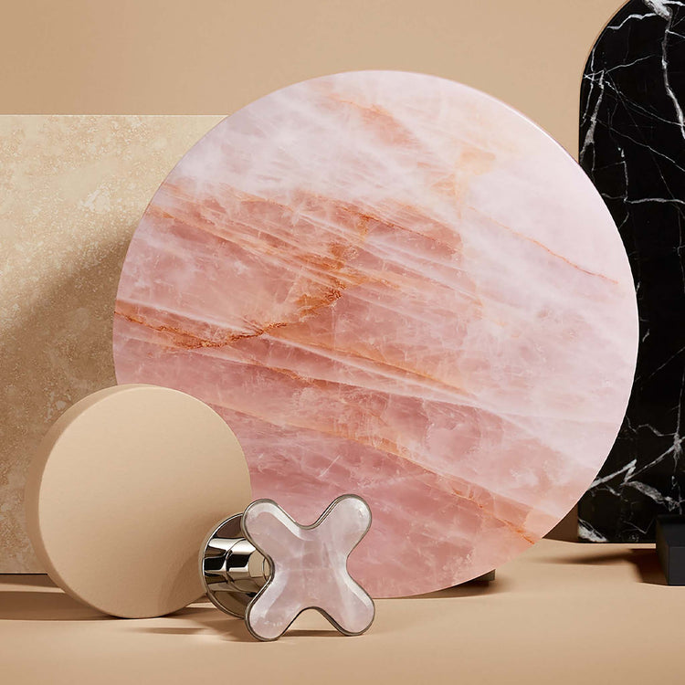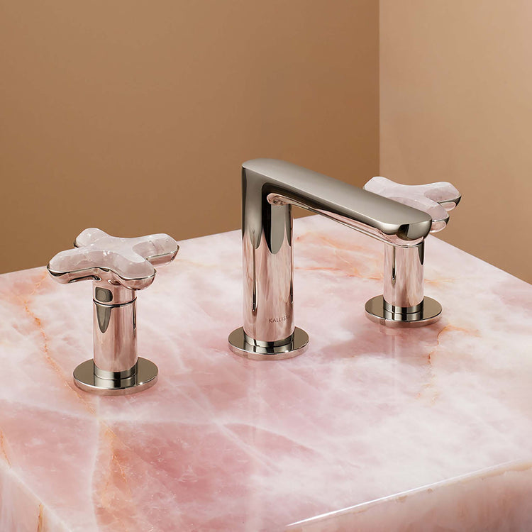 American contemporary form is embodied in the streamlined simplicity of the 002™ brassware collection, starring organic round edges and uninterrupted clean lines. Adorned with jewelry inspired handles featuring exquisite hand-crafted Rose Quartz, one of three meticulously curated natural stone offerings, and the availability in five luxurious finishes, the 002™ bathroom collection allows you to create a faucet pairing that suits your personal style. Due to the natural properties of the stone, coloring may vary.