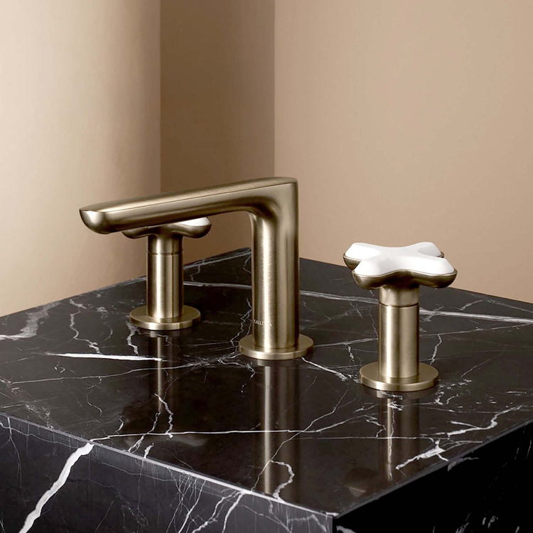 American contemporary form is embodied in the streamlined simplicity of the 002™ brassware collection, starring organic round edges and uninterrupted clean lines. Adorned with jewelry inspired handles featuring exquisite hand-crafted Italian Statuary White Carrara, one of three meticulously curated natural stone offerings, and the availability in five luxurious finishes, the 002™ bathroom collection allows you to create a faucet pairing that suits your personal style. Due to the natural properties of the stone, coloring may vary.