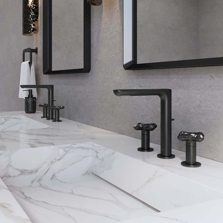American contemporary form is embodied in the streamlined simplicity of the 002™ brassware collection, starring organic round edges and uninterrupted clean lines. Adorned with jewelry inspired handles featuring exquisite hand-crafted Zebra Jasper, one of three meticulously curated natural stone offerings, and the availability in five luxurious finishes, the 002™ bathroom collection allows you to create a faucet pairing that suits your personal style. Due to the natural properties of the stone, coloring may vary.
