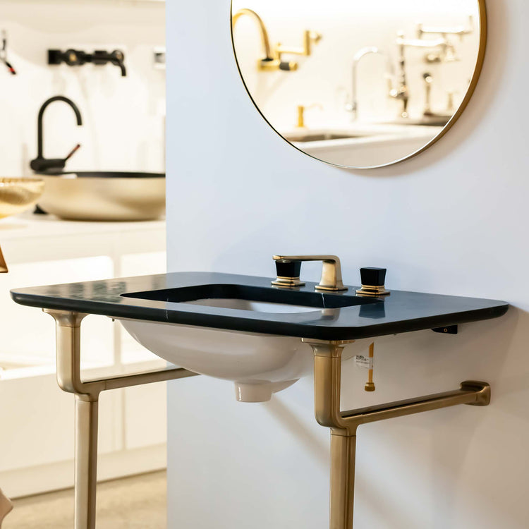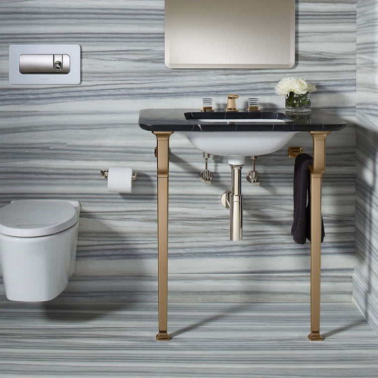 With soft, slender styling and modern fluid form, the Per Se console table leg brings a soft modern look to any bathroom setting. Sold as a single leg, and available in your choice of living finishes for a custom solution, this leg pairs perfectly with our Per Se collection console table top and coordinating sink faucets.