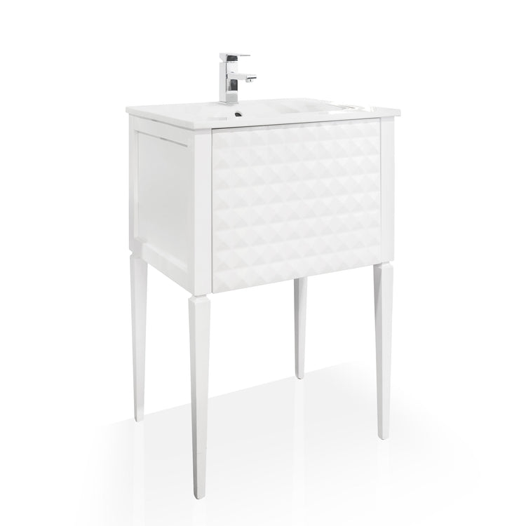 Diamond 60cm Bath Vanity with White Glass Stone Sink