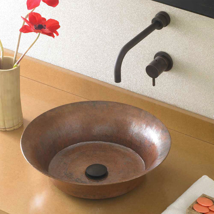 Maestro Bajo copper bathroom sink is artisan crafted; forged of high-quality recycled copper. Copper has been used for centuries in kitchens and baths throughout the world; Maestro Bajo brings modern functionality to this classic material.