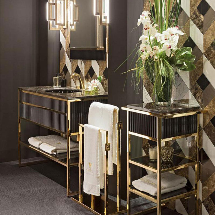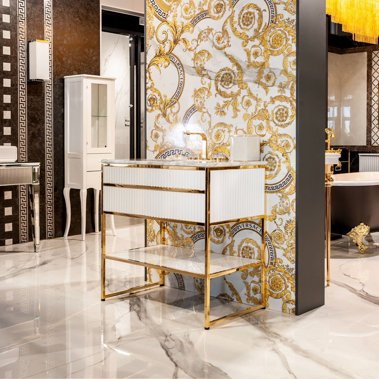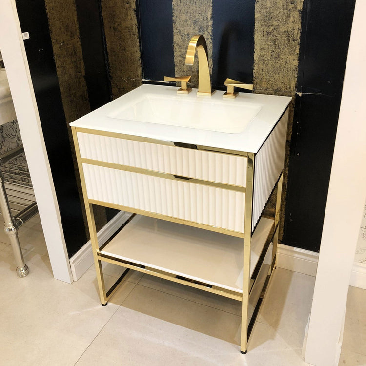 Academy 85cm Gold and White with Marble top and under-mount white ceramic basin bath vanity.