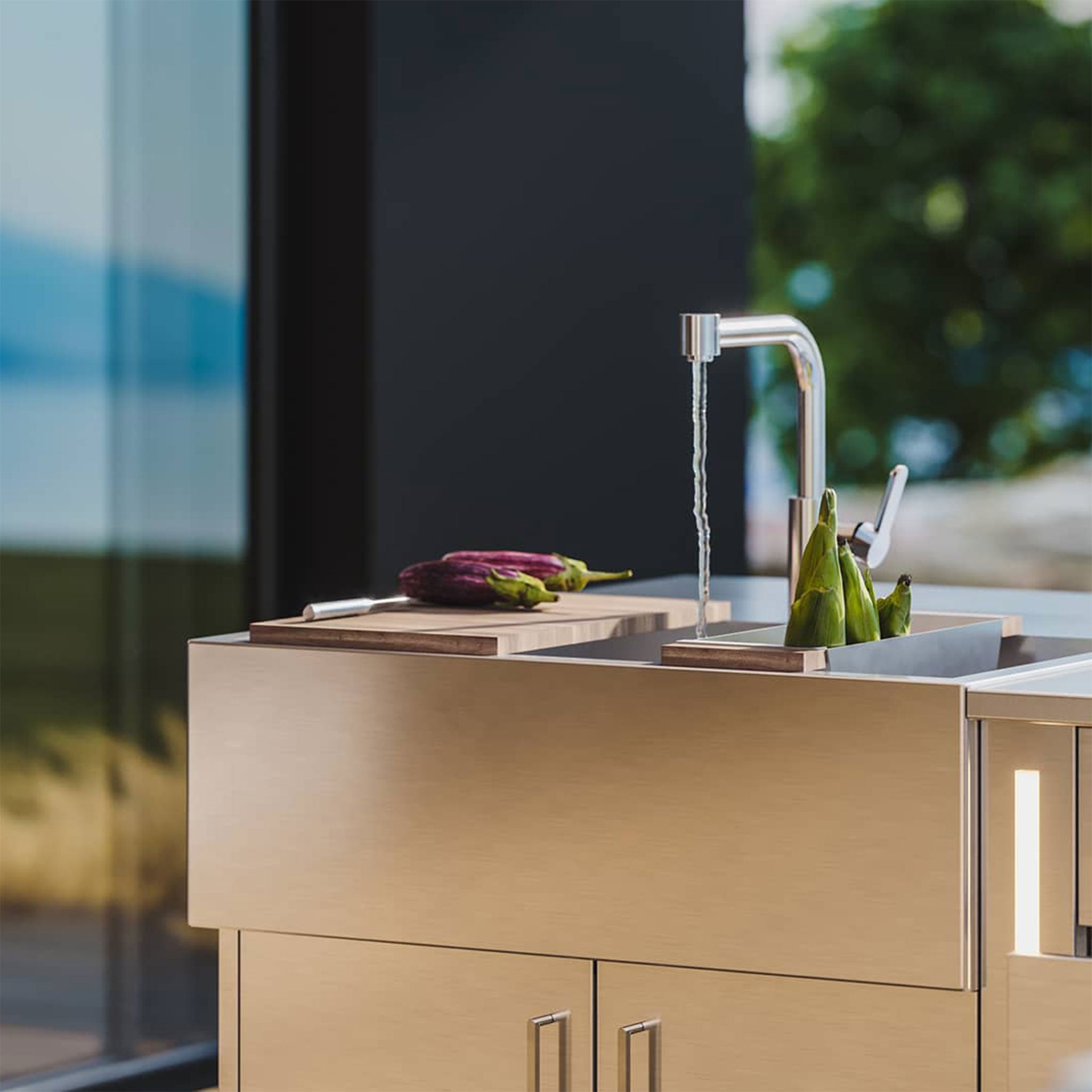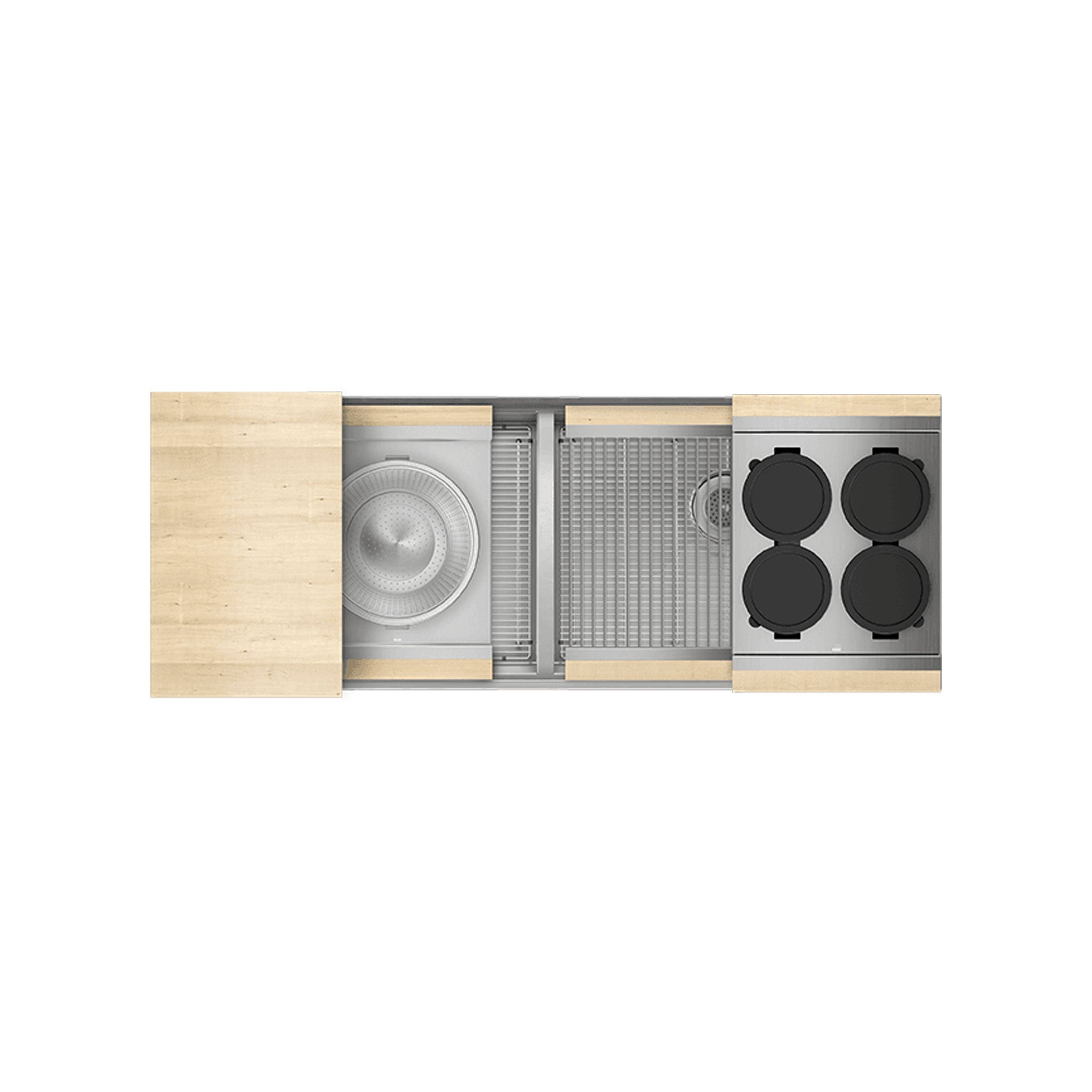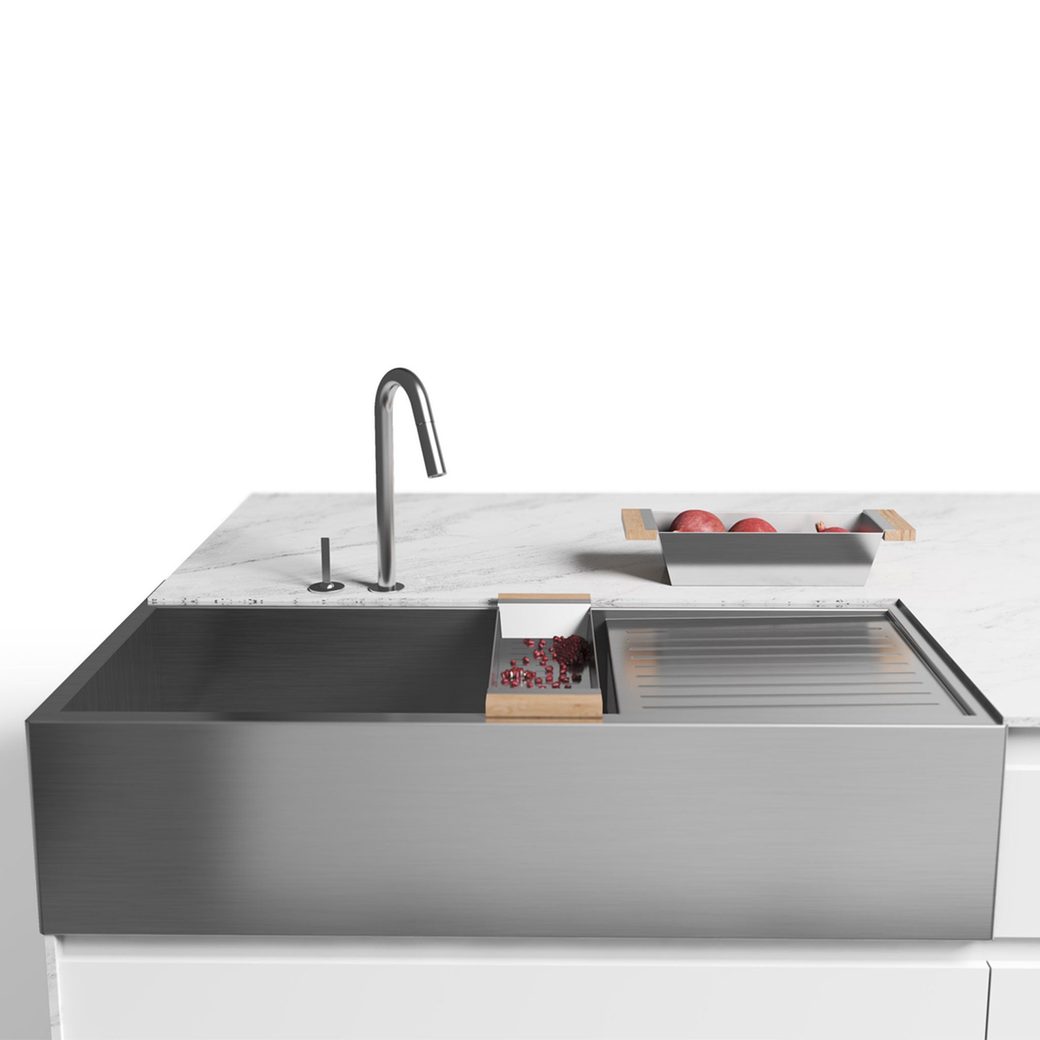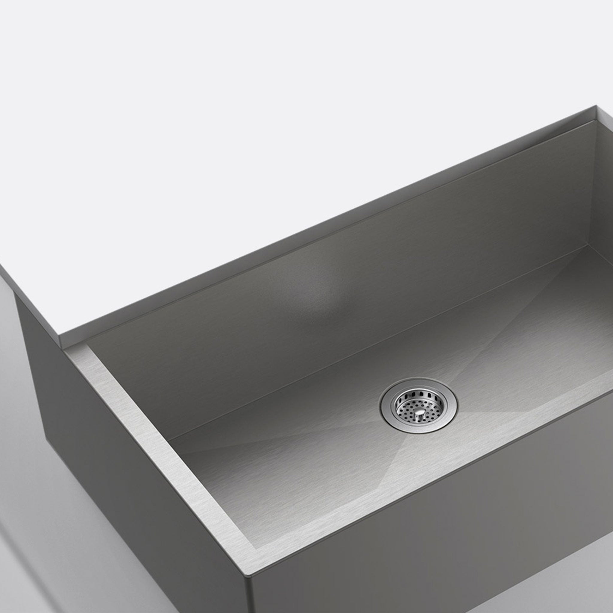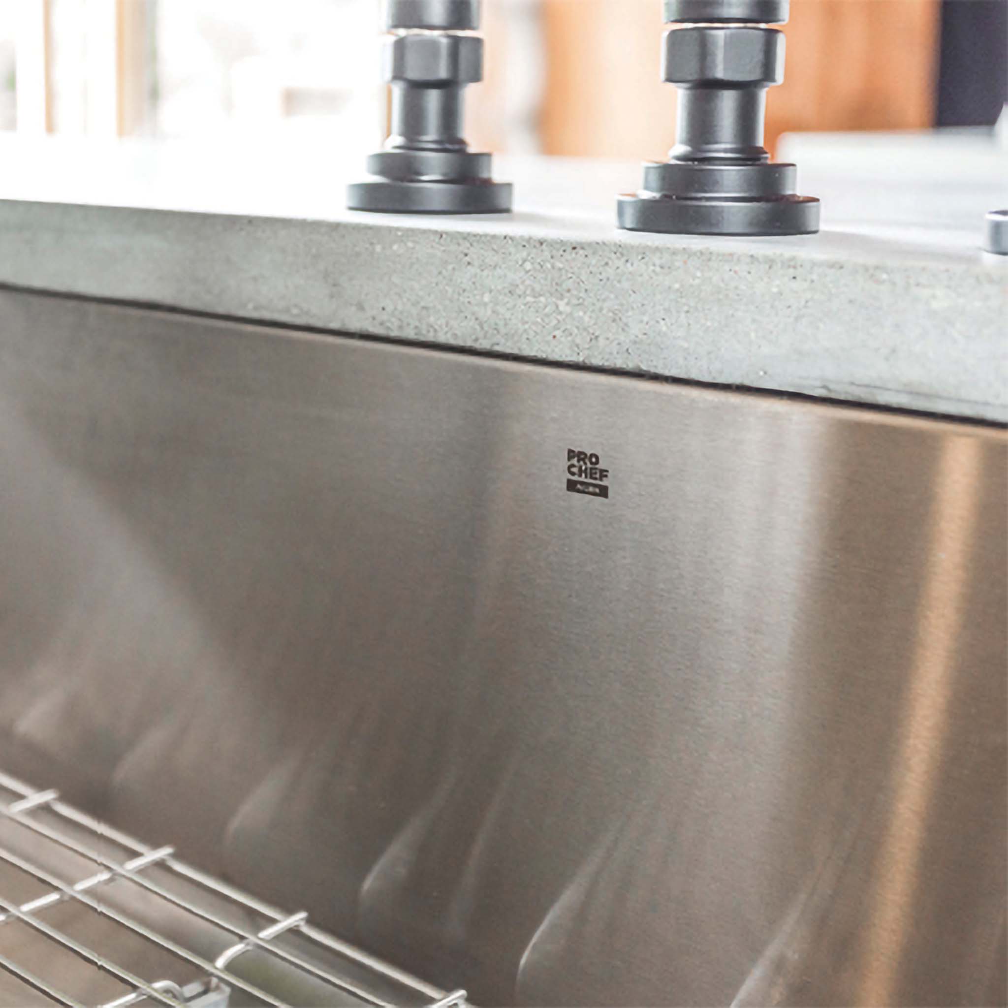 The Prostation collection by Prochef maximizes kitchen space with square corners, blending perfectly with modern décor. Handmade from high-quality stainless steel, it ensures a clean look.