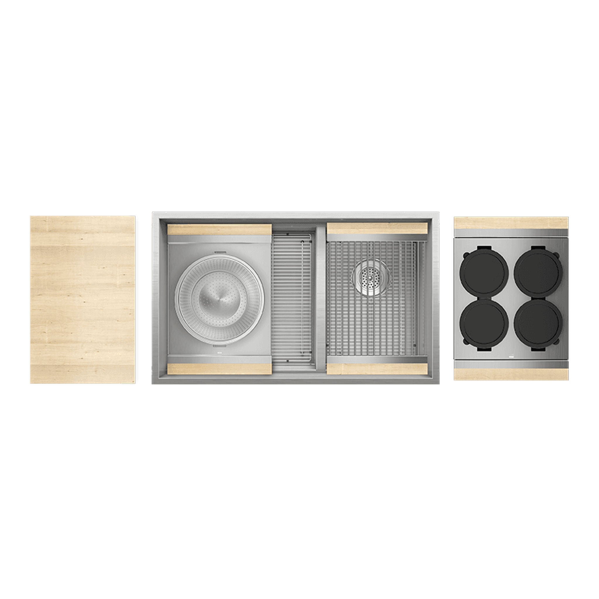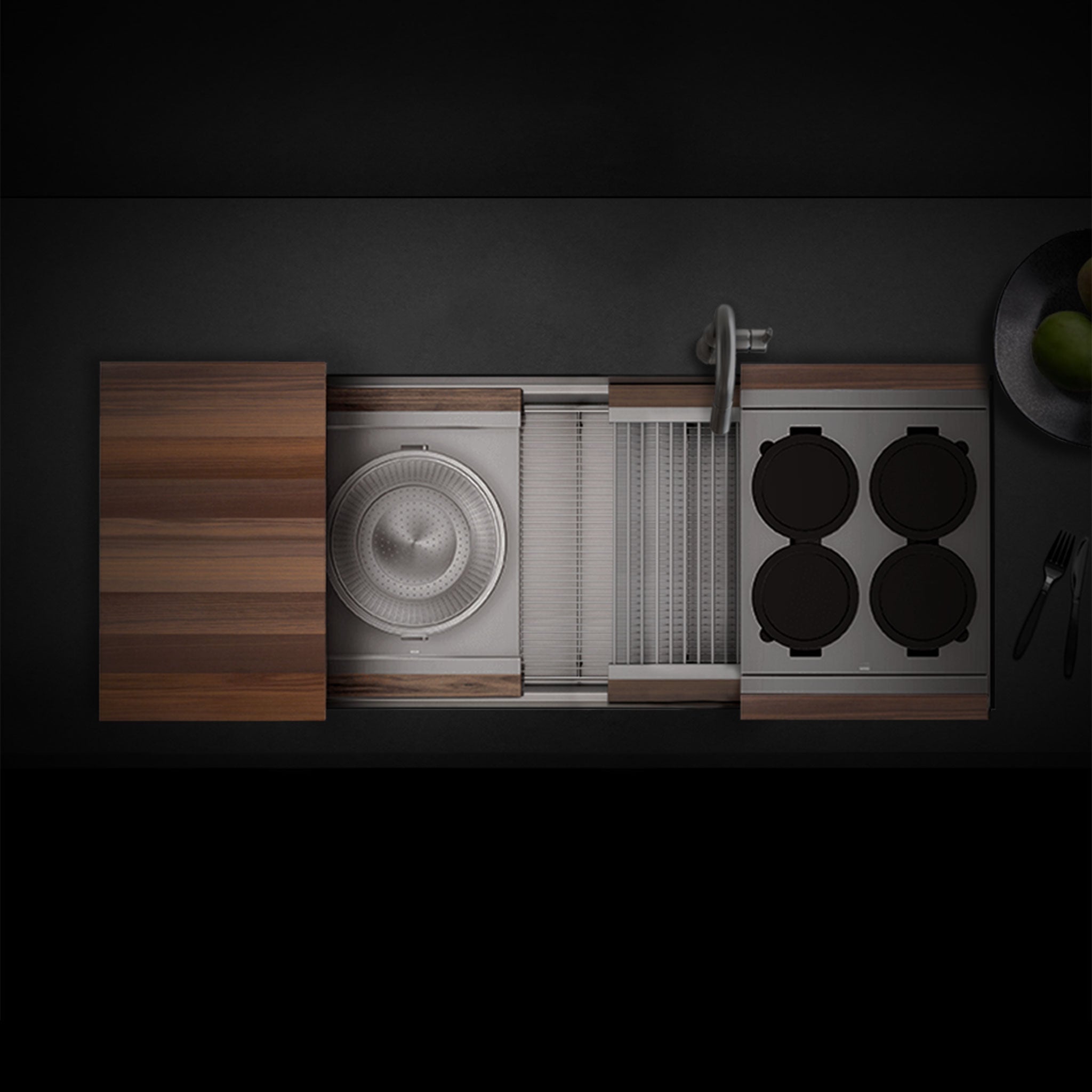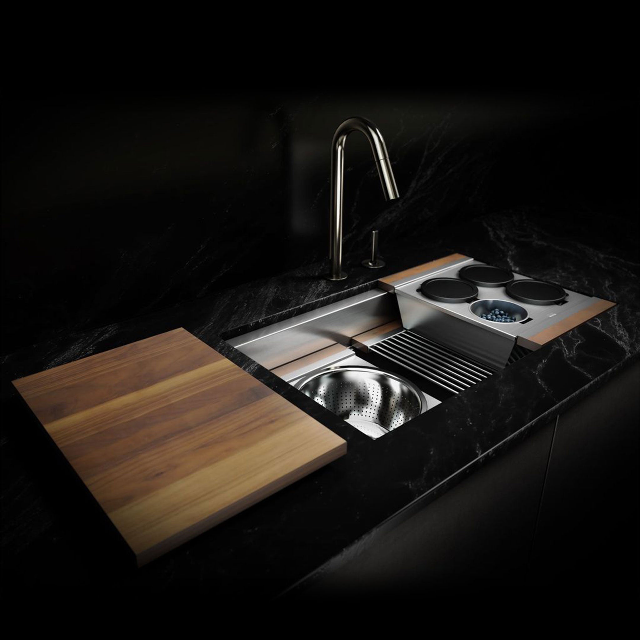 - TWO ACCESSORY LEDGES : The reveal installation provides a higher level to slide 18'' cutting board meanwhile, the integrated ledge provides a lower level for our 17'' accessories