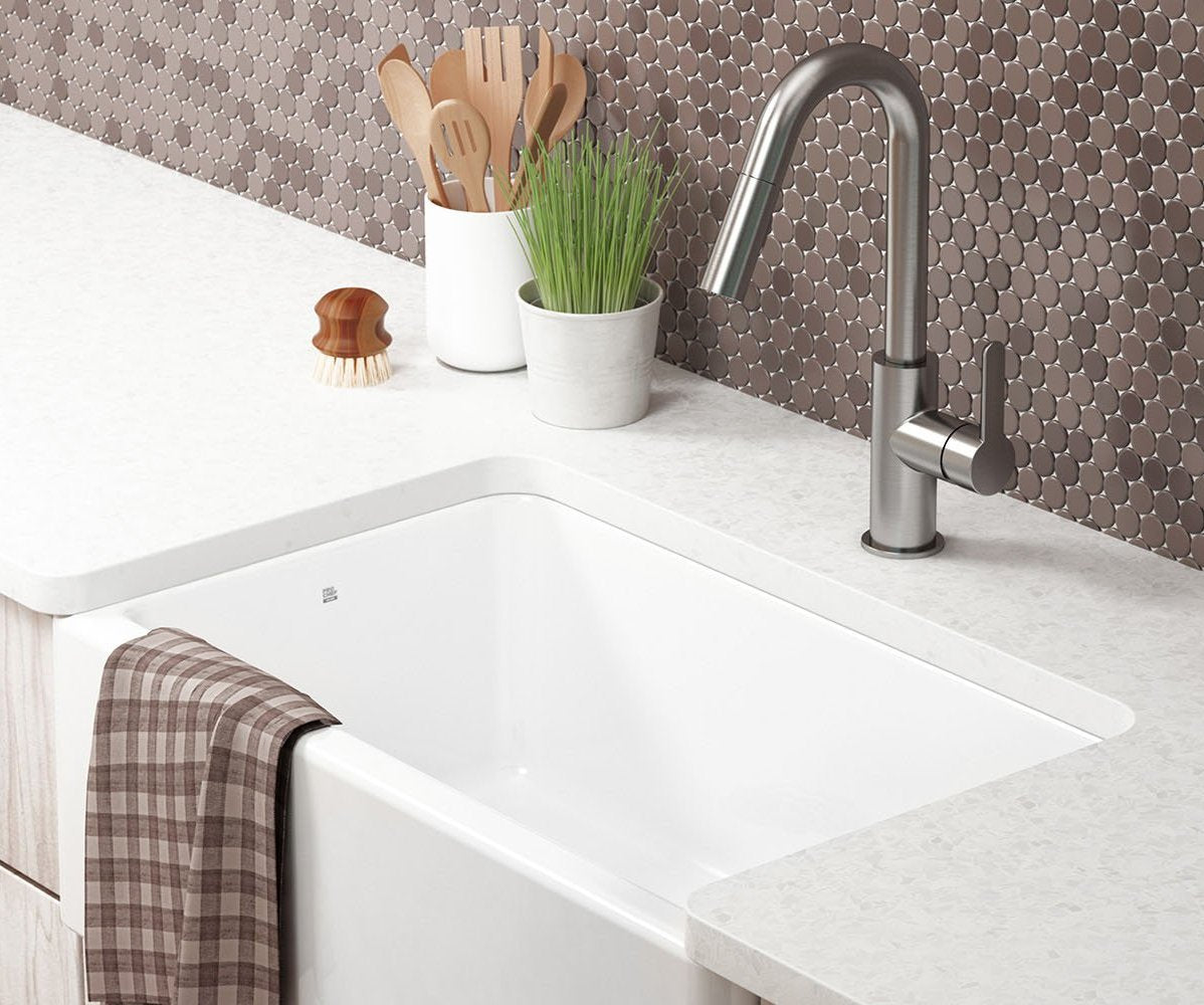 - UNDERMOUNT REVEAL INSTALLATION: Undermount sinks are usually installed underneath a solid piece of countertop material. This installation allows to easily wipe water and crumbs into sink without getting caught between the sink edge and the countertop. It also has the advantage to create a clean look.
