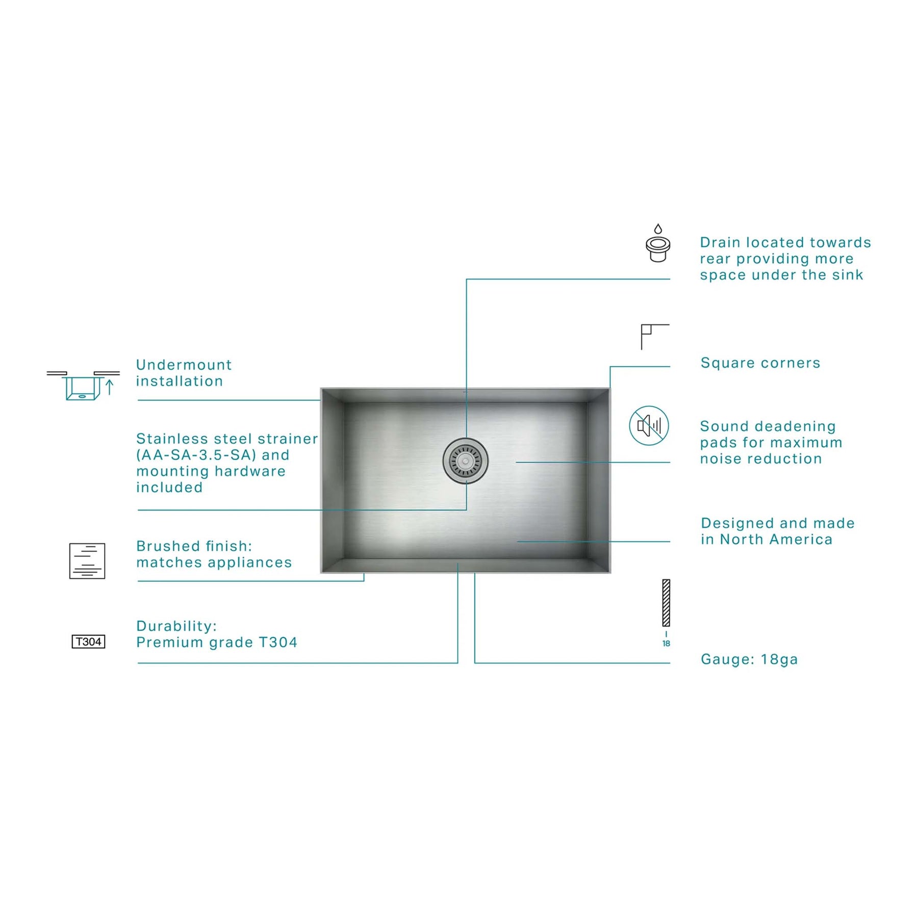 SET INCLUDES: Sink, stainless steel strainer (AA-SA-3.5-SA) and mounting hardware included, cutout template for overhang installation