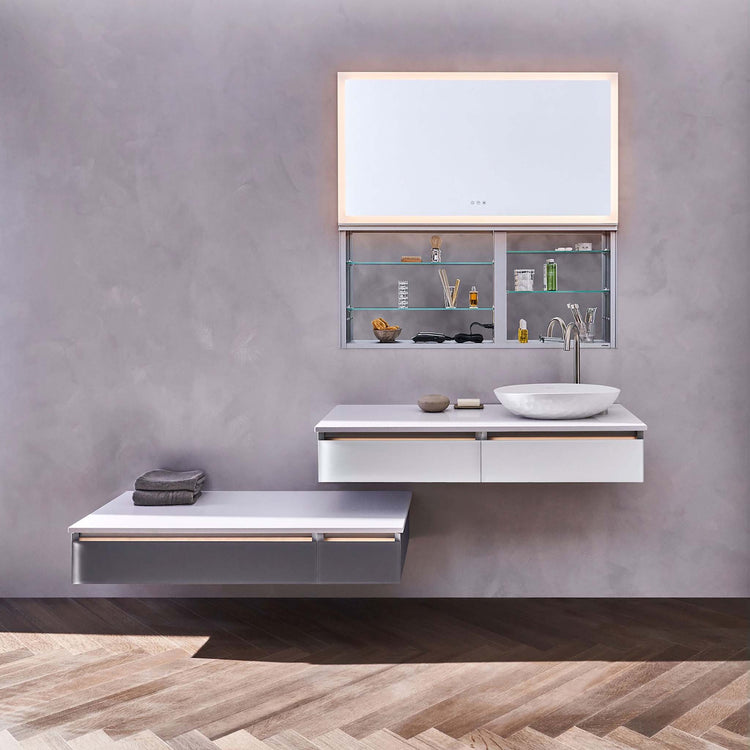 With its vertical design, Uplift revolutionized the way in which we experience medicine cabinets. Uplift Tech enhances the innovative features of the classic Uplift cabinet with the state-of-the-art technology, superior task lighting, and luxurious finishes to create a cutting-edge storage solution that is seamlessly functional and beautifully versatile.