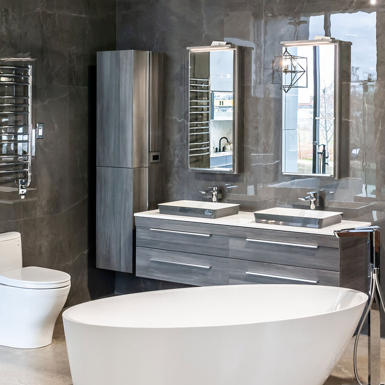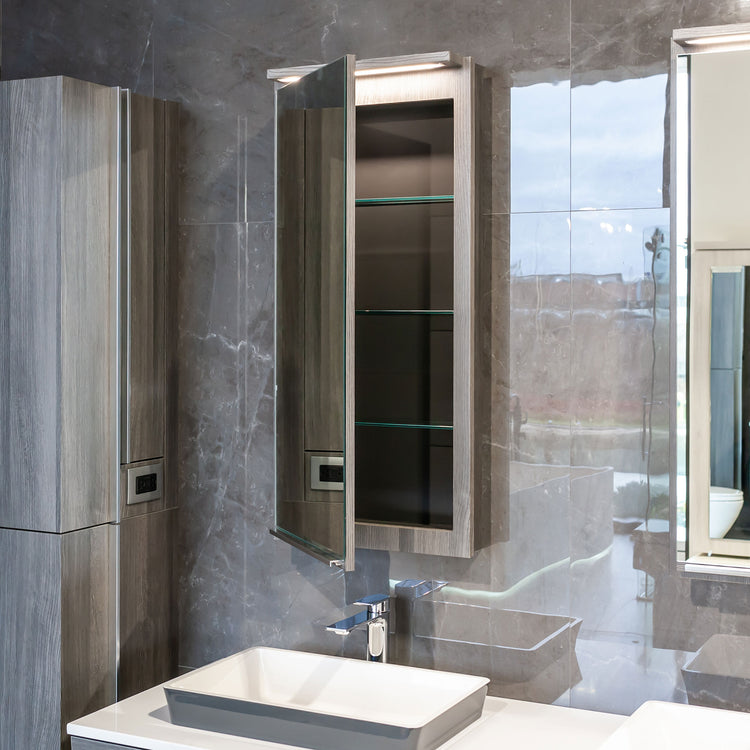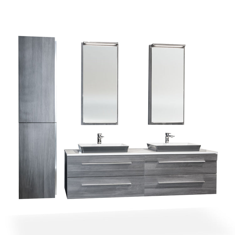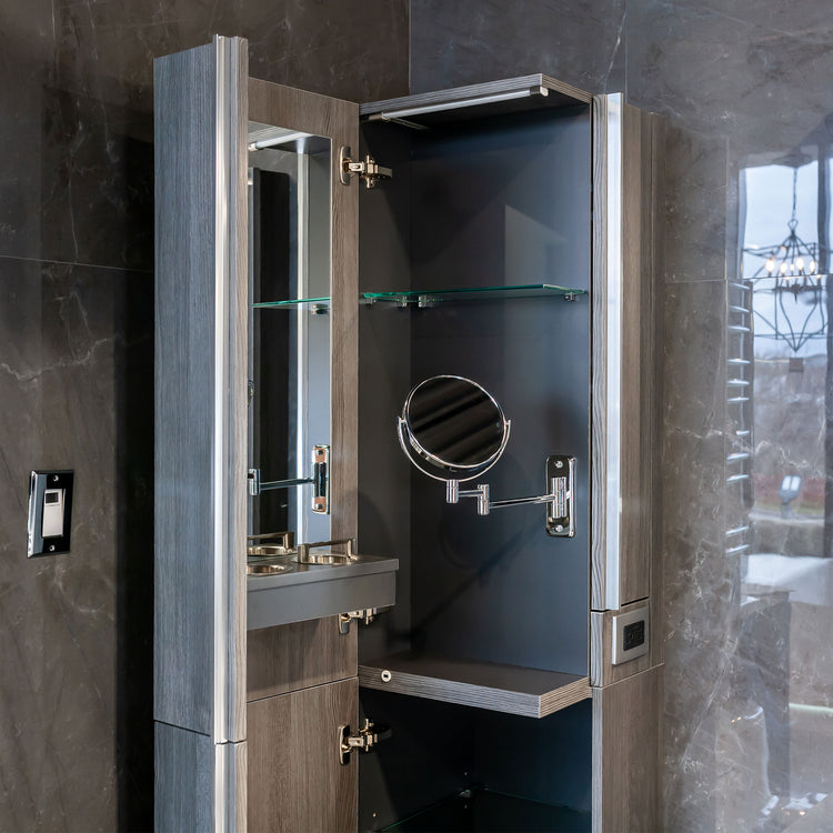 The modern vessel and vanity of the Vanico SoHo collection have been created to blend in together in perfect harmony. Vanico flat mirror or mirrored medicine cabinet with LED lighting included. Pre-installed wallmount faucet also available. Several choices of medicine cabinets and linen cabinets including a multi-purpose cabinet with dressing table.