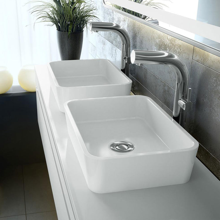 The Edge 45 is a small bathroom sink with a distinctive cubic shape. Perfectly paired with the Edge bath.
