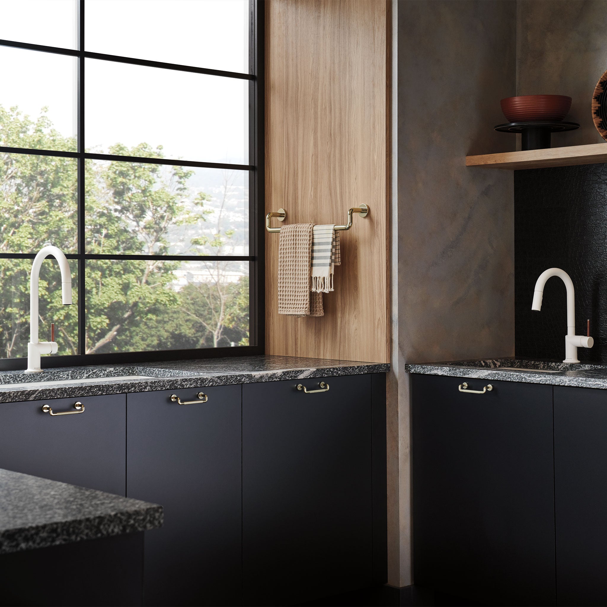 - Anti-rocking spout assembly ensures smooth spout swivel without wobbling.