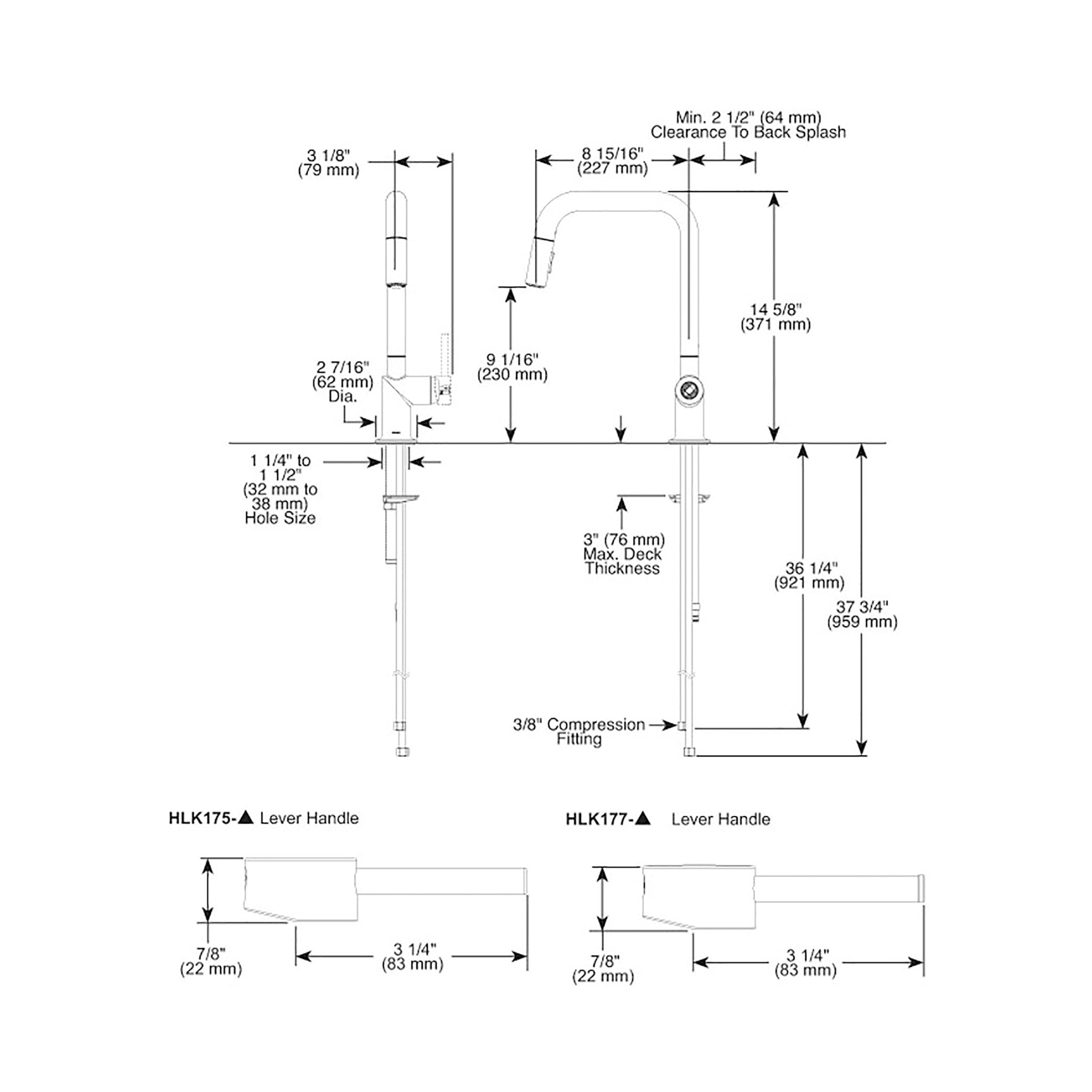 - 20” reinforced braided connection hoses with 3/8” compression fitting.
